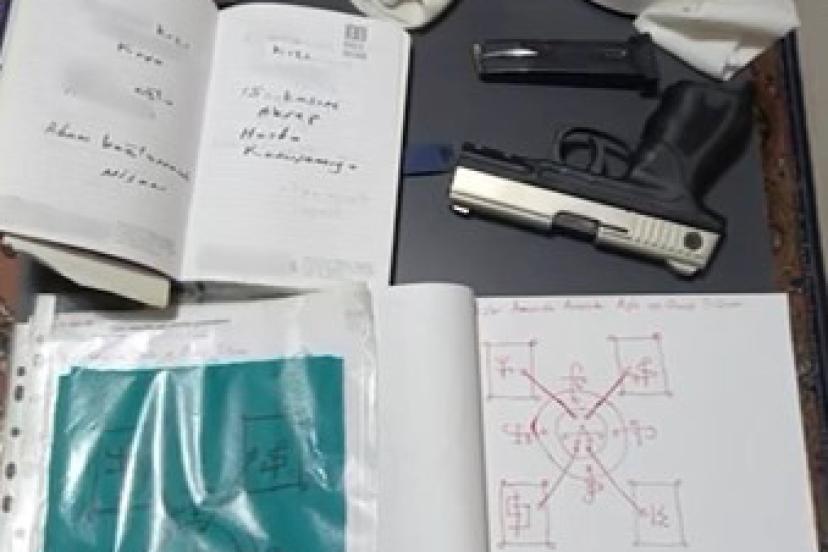 Şüphelilerin adreslerinde yapılan aramalarda 1 adet kuru sıkı tabanca ve tabancaya ait 54 fişek, 3 cübbe ve sarık, Arapça yazılı tılsım ve muskalar, müştekilere ait bilgilerin ve muska yapılacağı belirtilen rahatsızlıkların yer aldığı defter, cep telefonları, dizüstü bilgisayar ile çeşitli dijital materyaller ele geçirildi.