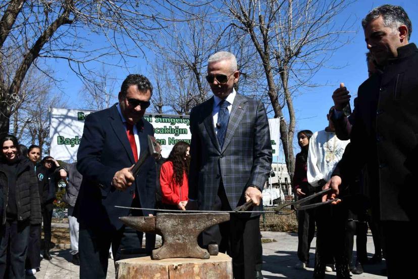 Halk oyunları gösterisi ile devam eden etkinlikte protokol üyeleri, örste demir dövüp, boyalı yumurta tokuşturdu. Nevruz ateşinin yakılmasıyla katılımcılar ateşin üstünden atladı, ardından halay çekti.