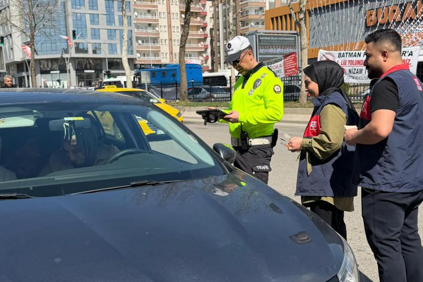 Emniyet personelleriyle birlikte Batman Park noktasında trafik uygulaması yapan ekipler, durdurulan araçlardaki sürücü ve yolculara 112 sistemi hakkında birebir bilgilendirme yaptı.