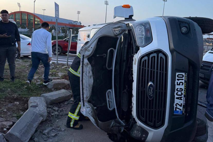 Batmanda meydana gelen kazada, bir servis aracı yan yattı. Olayda yaralanan olmazken araçlarda maddi hasar oluştu.