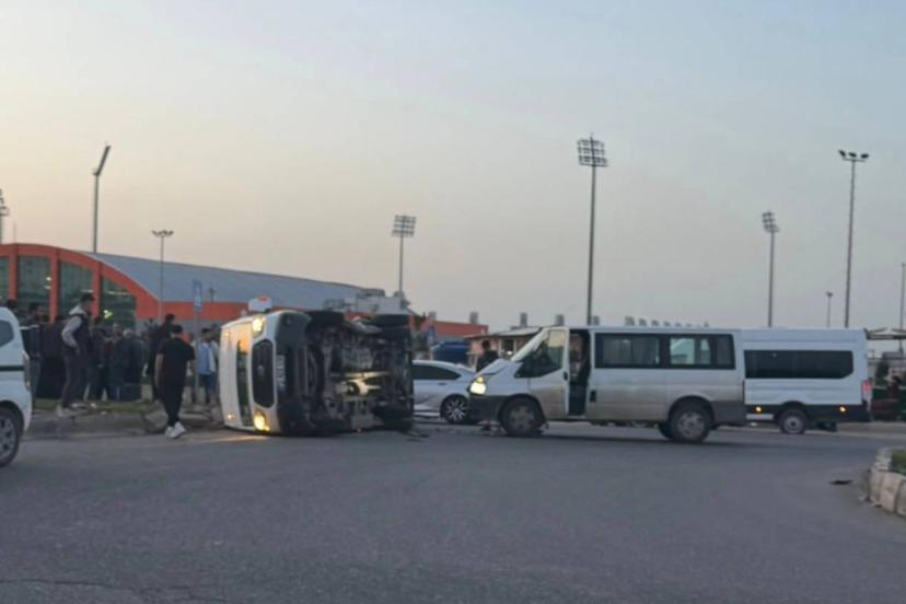 Batman’da kavşakta kaza: Servis aracı devrildi