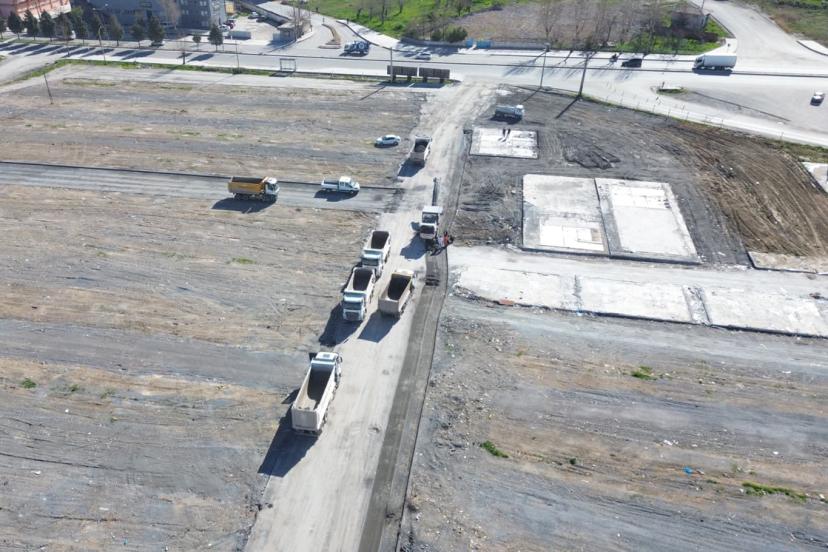 Deprem konutlarının tamamlanmasıyla birlikte kaldırılan konteynerlerin ardından alanda bulunan asfalt tabakası sökülerek, yeniden değerlendirilmek üzere ayrıştırılıyor.
