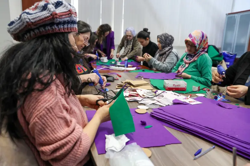 Kadınların dayanışma ve ortak üretim gücünü bir kez daha ortaya koyan ürünler, 8 Mart Pazar günü yapılacak yürüyüşte kullanılacak.