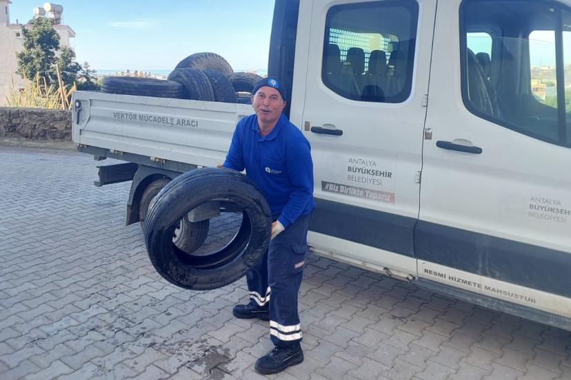 Hem doğaya zarar veren hem görüntü kirliliğinin yanı sıra yağışlı havalarda içine biriken su nedeniyle sinek ve haşerelerin üreme alanı haline gelen atık lastikler, ekipler tarafından alınıyor. Araçlarla taşınarak belirlenen noktalarda istiflenen atık lastikler daha sonra geri dönüşüm tesislerine gönderiliyor. 2025 yılında 5 TIR, son 6 yılda yapılan çalışmalarla ise toplam 30 TIR atık lastik toplandı.