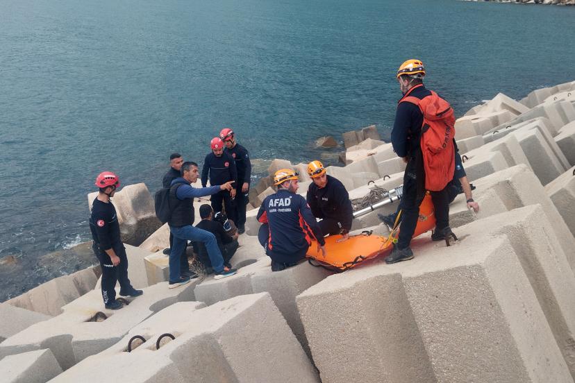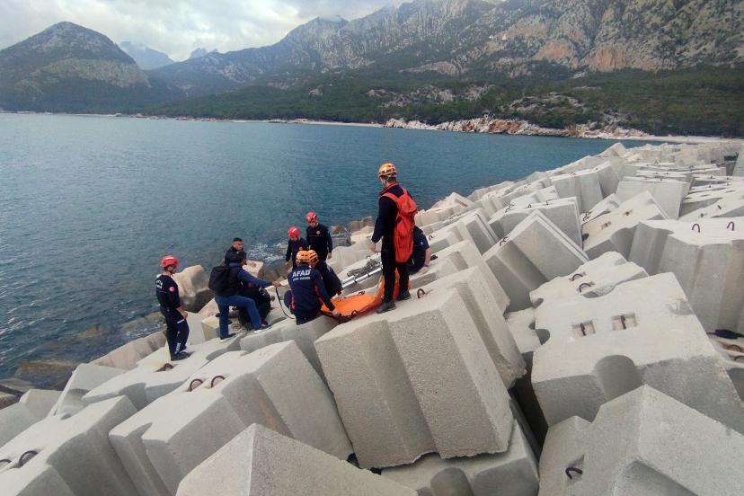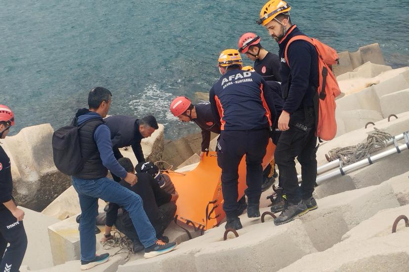 ANTALYA'da balık tutmaya gittiği dalgakıranda ayağının kayması sonucu beton bloklar arasına sıkışan Atilla Toprak (65), yakla...