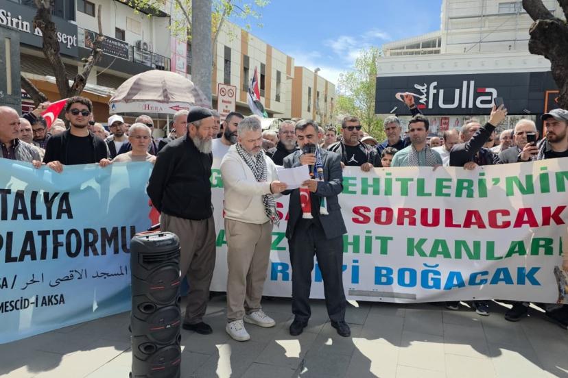 Basın açıklaması sonrasında açıklamalarda bulunan HÜDA PAR Antalya İl Başkanı Muhammet Şerif Durmaz, Müslümanlar için kırmızıçizgi olan Mescid-i Aksa'nın kapalı tutulmasının kabul edilemez olduğunu vurguladı.
