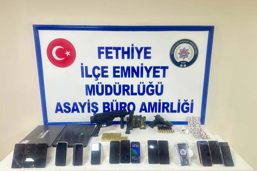 MUĞLA'nın Fethiye ilçesinde düzenlenen uyuşturucu operasyonunda, haklarında toplam 42 yılı aşkın kesinleşmiş hapis cezası bulunan firarilerin de aralarında bulunduğu 12 şüpheli yakalandı. Operasyonda silah ve uyuşturucu ele geçirilirken, 3 kişi tutuklandı.