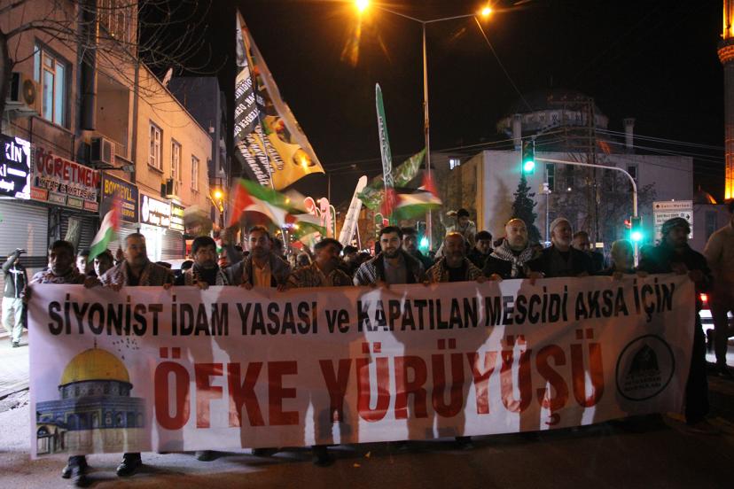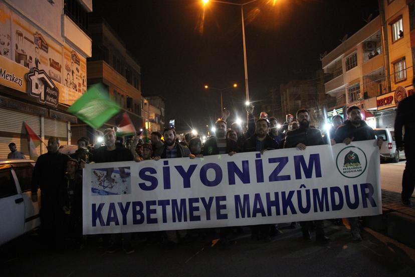 Gaziantep'te, siyonist işgalcilerin idam kararına tepki göstermek amacıyla düzenlenen yürüyüşte binlerce kişi bir araya geldi. Peygamber Sevdalıları tarafından organize edilen yürüyüşte katılımcılar, "Kahrolsun israil, kahrolsun siyonizm" sloganları attı.