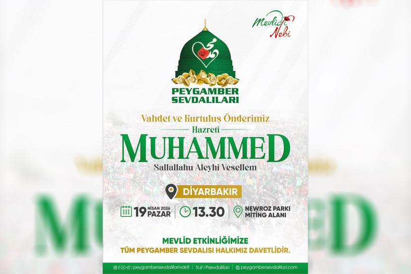 "Sevgili Diyarbakırlı hemşerilerim, 19 Nisan Pazar günü Newroz alanında Peygamber Sevdalıları'nın tertiplediği, Vahdet ve Kurtuluş Önderi Hazreti Muhammed'i Anma Mevlid-i Nebi etkinliğine HÜDA PAR Diyarbakır İl Başkanlığı olarak; ilçe başkanlarımız, kadın kollarımız ve gençlik kollarımızla birlikte katılacağız.