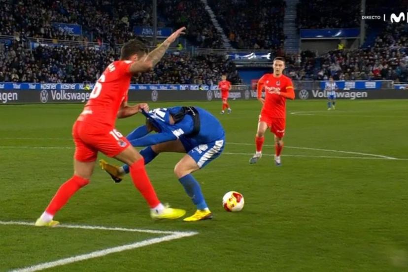 Karşılaşmanın ikinci yarısında Real Sociedad savunmacısı Duje Caleta-Car, ceza sahası içinde Alavesli Toni Martinez'in formasını çekti.