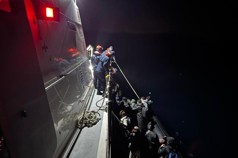 Urla ilçesi açıklarında görevli Sahil Güvenlik Gemisi ve Sahil Güvenlik Botu tarafından tespit edilen hareketli lastik bot durduruldu.