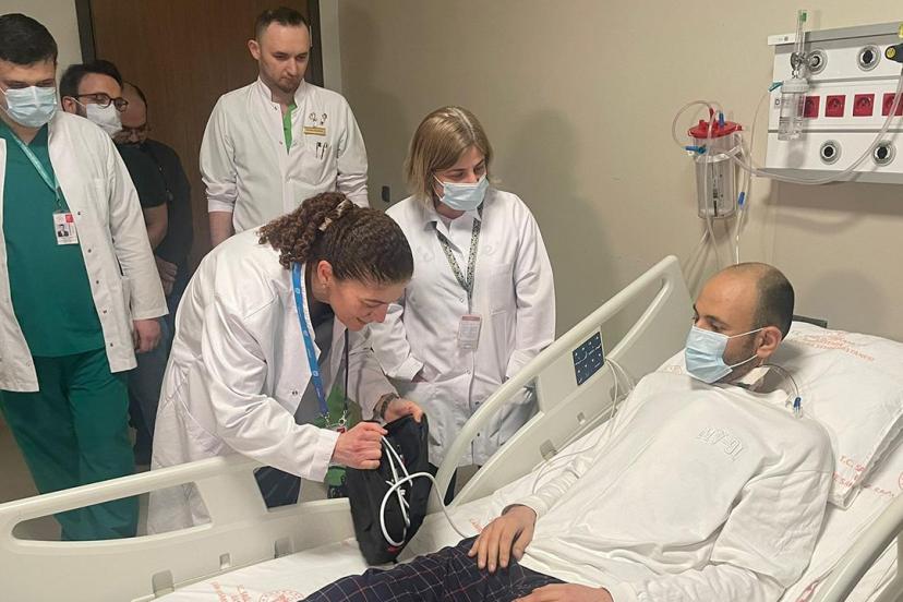 İleri derecede kalp yetmezliği yaşayan 35 yaşındaki Gökhan Sarıca’ya, uygun donör bulunana kadar yapay kalp destek cihazı takıldı.