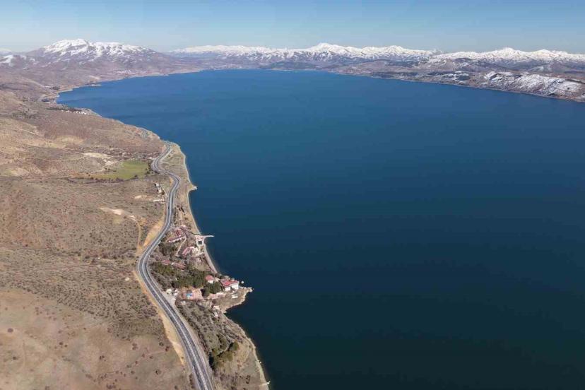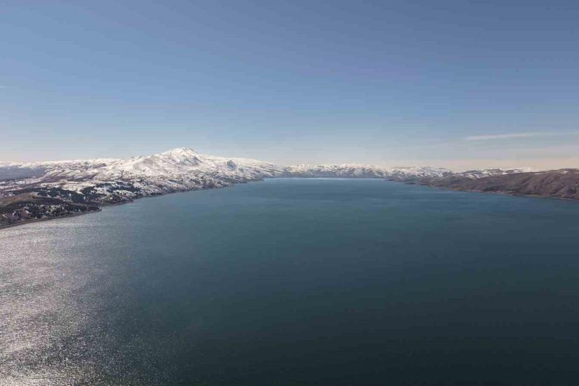 Elazığ’ın Sivrice ilçesinde bulunan ve "Doğu’nun Saklı Denizi" olarak adlandırılan Hazar Gölü ile hemen yanı başındaki Hazarbaba Dağı, kış mevsiminin tüm güzelliğini bir arada sunuyor. Karla kaplı dağlar ile gölün mavi sularının birleştiği o anlar, havadan görüntülendi. Hazar Gölü’nün maviliği, Hazarbaba Dağı’nın beyazlığı ve güneşin parlaklığı birleşerek bölgede kartpostallık görüntüler oluştu.