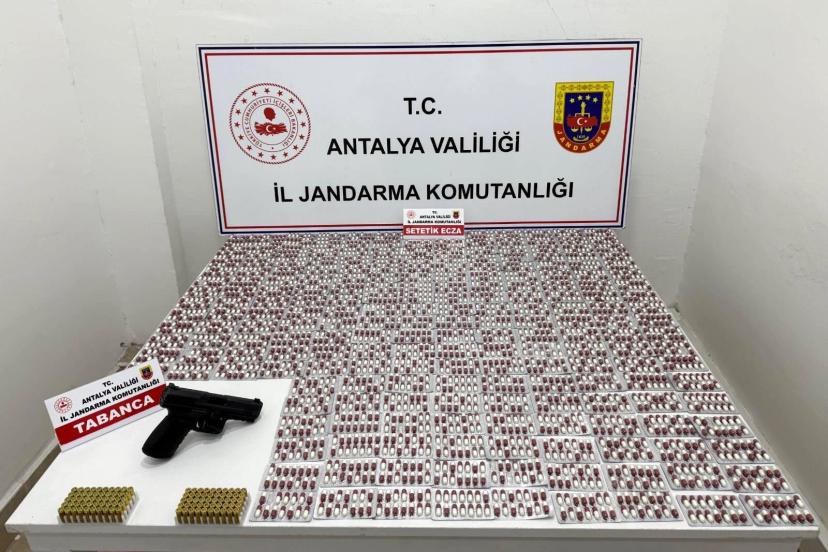 Antalya İl Jandarma Komutanlığı ekipleri tarafından Antalya Cumhuriyet Başsavcılığı’nın talimatları doğrultusunda Kepez ilçesinde uyuşturucuyla mücadele kapsamında operasyon düzenlendi. Operasyonda 2 şüphelinin ikametinde yapılan aramada 1298 sentetik uyuşturucu hap, 9 milimetre ruhsatsız tabanca ve şarjörü ile 113 tabanca mermisi ele geçirildi. Olayla ilgili adli tahkikat başlatıldı.