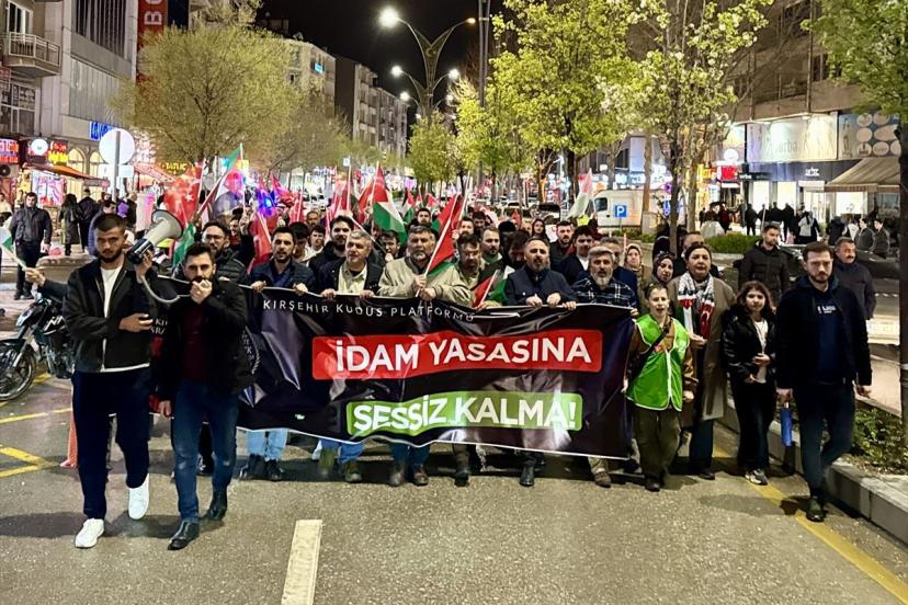 Kırşehir'de düzenlenen yürüyüşte, İsrail'de kabul edilen idam yasası protesto edildi.