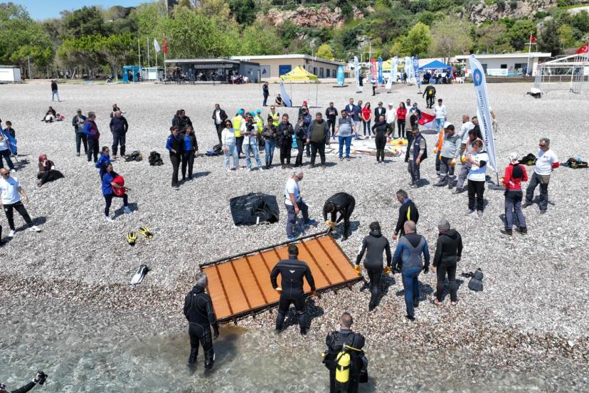 BÜYÜKŞEHİR Belediyesi ‘Antalya İli Deniz Çöpleri Eylem Planı’(DÇEP) kapsamında, kent sakinlerinin deniz ve kıyı çöplerine yönelik farkındalığının arttırılması amacıyla kıyı temizliği etkinliği düzenledi. Gönüllü dalgıçların ve vatandaşların katılımıyla 'Mavi Akdeniz' sloganıyla gerçekleşen kıyı temizliğinin ilk etabı, Konyaaltı Varyant EKDAĞ 1 No’lu Plajı önünde gerçekleşti. Bu yıl geçmiş yıllara oranla deniz dibinden daha az atık çıkması farkındalık çalışmalarının amacına ulaştığının göstergesi oldu.