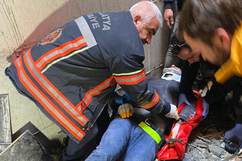 Boşlukta mahsur kalan işçi, itfaiye ekiplerinin müdahalesiyle bulunduğu yerden yaralı olarak çıkarıldı.