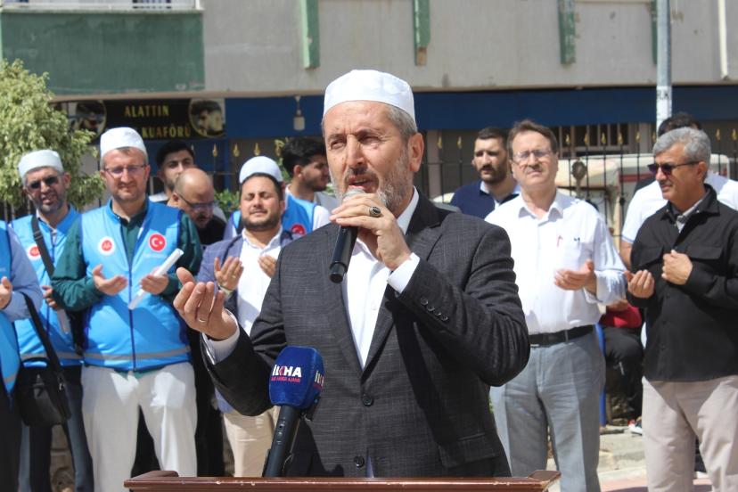 Mersin İl Müftülüğü tarafından organize edilen uğurlama töreni, Akdeniz Hz. Ebubekir Camii önünde gerçekleştirildi.