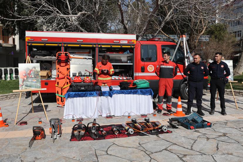MUĞLA Büyükşehir Belediyesi, 1-7 Mart Deprem Haftası kapsamında Menteşe Sınırsızlık Meydanı'nda itfaiye arama kurtarma ekipleri ile afet müdahale araç ve ekipmanlarını tanıttı.