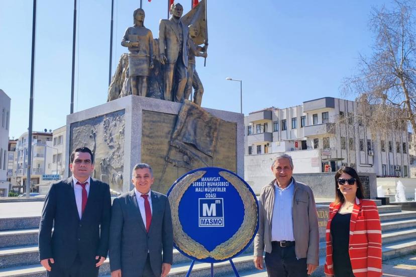 ANTALYA Manavgat Serbest Muhasebeci Mali Müşavirler Odası (MASMO), Muhasebeciler Haftası dolayısıyla Cumhuriyet Meydanı'ndaki Atatürk Anıtına çelenk koydu.