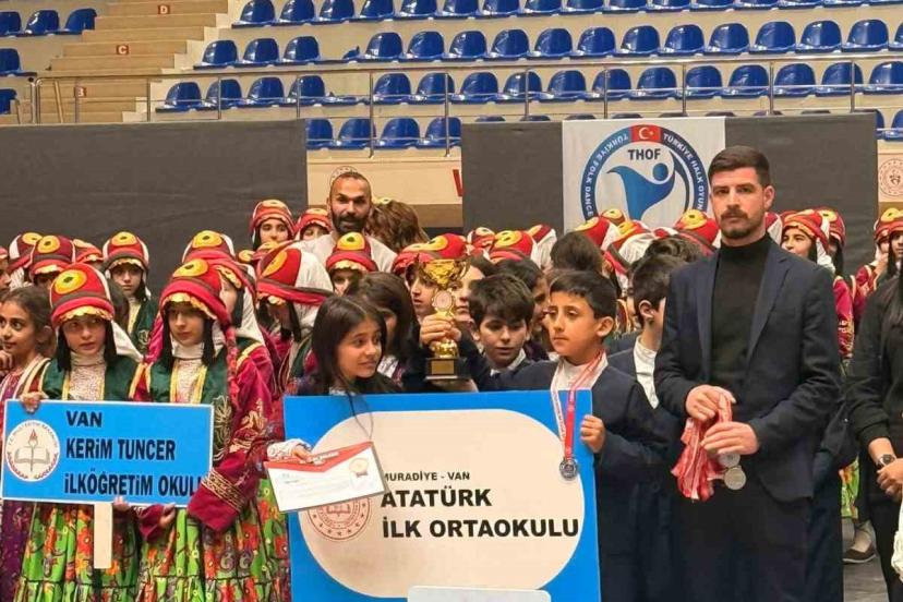 Van Gençlik ve Spor İl Müdürlüğü tarafından düzenlenen Okullar ve Kulüpler Arası Halkoyunları İl Birinciliği yarışmasında minikler kategorisinde şampiyon olan Muradiye Atatürk İlkokulu Halkoyunları Ekibi, ilçede büyük bir sevinçle karşılandı.