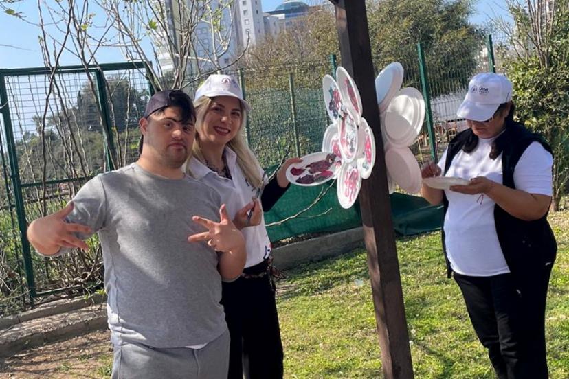 Etkinlik kapsamında katılımcılar, tabak boyama atölyesinde bir araya gelerek renkli çalışmalar gerçekleştirdi. Boyanan tabaklar bir araya getirilerek dev çiçek figürlerine dönüştürüldü. Ortaya çıkan bu özgün çalışmalar, Engelsiz Kafe'nin bahçesine yerleştirildi. Buluşmada, down sendromlu bireylerin sosyal hayata aktif katılımının önemi vurgulanırken, toplumda farkındalığın artırılmasına yönelik mesajlar öne çıktı.