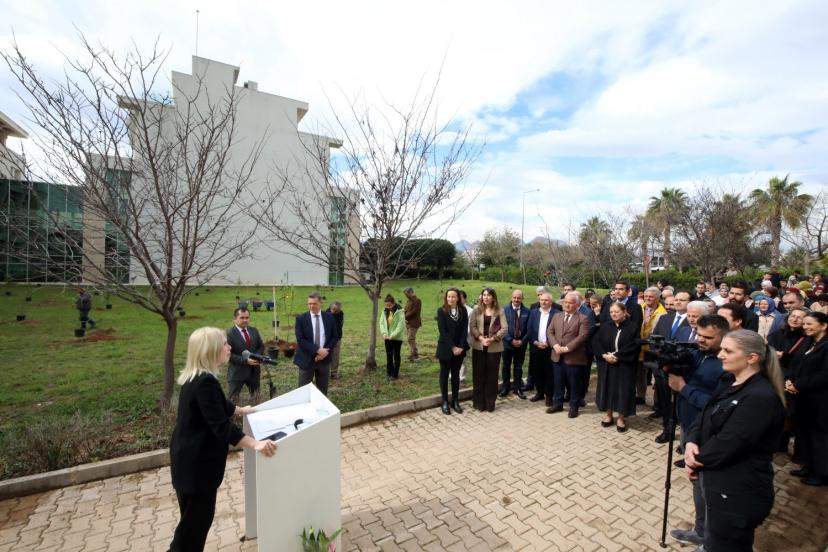 Akdeniz Üniversitesi Rektörü Prof. Dr. Özlenen Özkan, "Bugün burada çok anlamlı ve değerli bir iş için bir aradayız. İlahiyat Fakültemizin bahçesini 80 portakal ve 20 limon fidesiyle buluşturmanın sevincini yaşıyoruz. Bu sadece bir dikim faaliyeti değil; toprağa, hayata ve geleceğe dair bir sorumluluk beyanıdır. Peygamberimizin 'Yarın kıyametin kopacağını bilseniz bile elinizdeki fidanı dikiniz' sözü, bize bu vazifenin ehemmiyetini öğretir. İnancımız, insanla birlikte doğayı da korumayı; emeği, bereketi ve emaneti gözetmeyi öğütler. Bugün attığımız bu adım, tam da bu anlayışın sahadaki karşılığıdır" dedi.