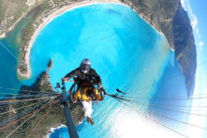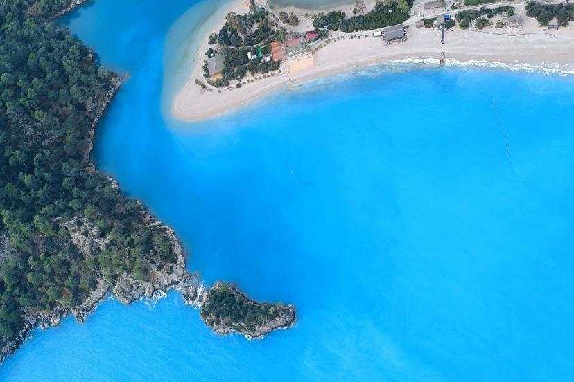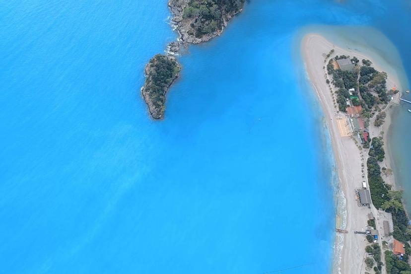 Dünyaca ünlü Ölüdeniz'in rengi iki gündür etkili olan sağanağın ardından güneşli havayla birlikte turkuaza döndü. Macera tutkunları, Babadağ’daki pistlerden tandem pilotlar eşliğinde yamaç paraşütü yaparak Ölüdeniz’in eşsiz manzarasını kuş bakışı izledi. Bazı turistler de turkuaza dönüşen deniz manzarası eşliğinde hatıra fotoğrafı çektirdi. Tandem yamaç paraşütü pilotu Mehmet Gönüllü tarafından GoPro ve fotoğraf makinası ile çekilen havadan görüntülerle, Ölüdeniz Plajı’ndaki renk değişimi görüntülendi.