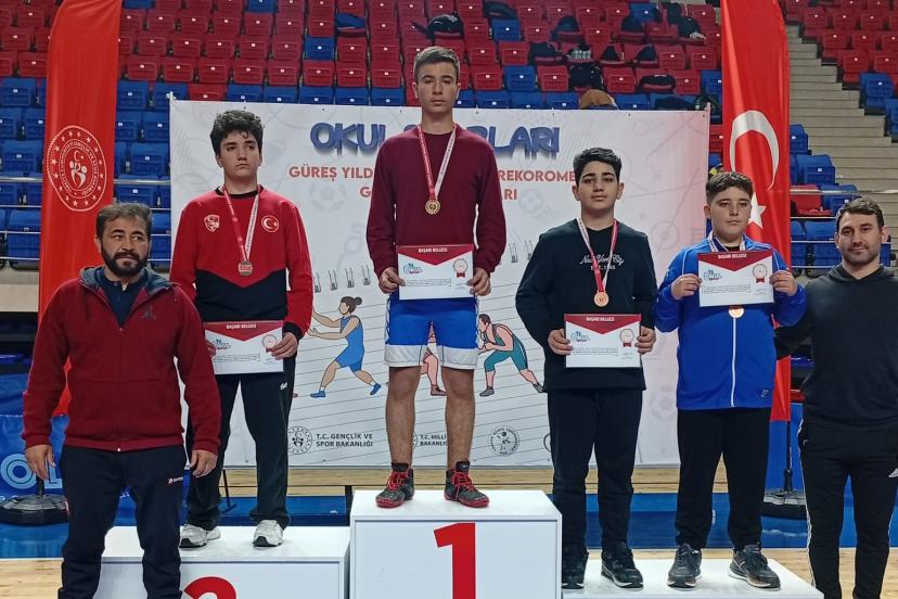 NİĞDE'de düzenlenen Yıldızlar Serbest Güreş Grup Müsabakaları'nda Serik Gençlik Merkezi güreş takımı sporcusu Osman Karaca, 75 kiloda birincilik elde etti.