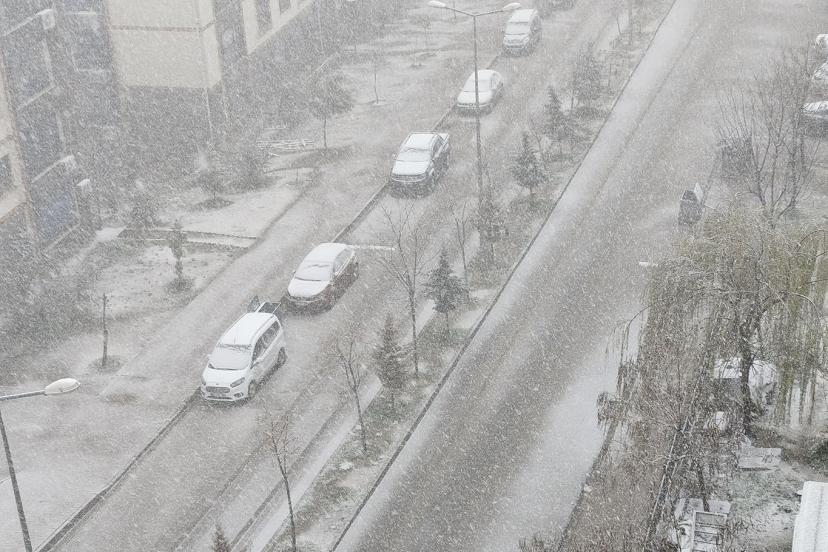 İlkbaharın ortasında kıştan kalma manzaraların yaşandığı kentte öğle saatlerinde aniden bastıran yoğun kar yağışı, kısa sürede yolları ve park hâlindeki araçların üzerini beyaz örtüyle kapladı.