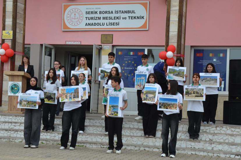 Serik Borsa İstanbul Turizm MTAL'de düzenlenen törene Kaymakam Cemal Şahin, Belediye Başkan Yardımcısı Hamza Çimen, İlçe Mili Eğitim Müdürü İkram Ekiz, Okul Müdürü İsa Keleş, okul müdürleri, STK başkanları, öğretmen ve öğrenciler katıldı. Saygı duruşu ve İstiklal Marşı'nın ardından günün anlamını belirten konuşmayı Okul Müdürü İsa Keleş yaptı. Kaymakam Cemal Şahin de "Antalya'mız turizm açısından dünyada önde gelen merkezlerinden biridir. Her santimetresinde bir tarih yatmaktadır. Serik ise bu tarihin yapılanmasında önemli bir noktadır. İlçemiz turizm sayesinde her geçen gün ivmesini arttırarak yoluna devam etmektedir ve deniz kum güneş ekseninde dayalı bir turizm faaliyetini uzun yıllardır sürdürmektedir" dedi.