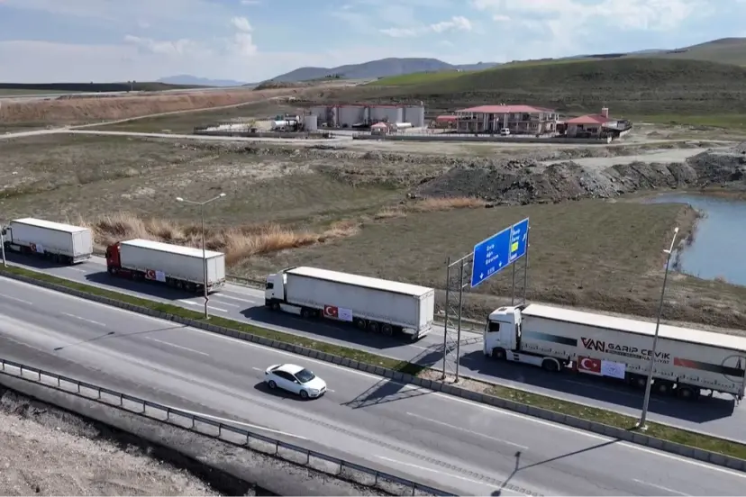 “Şifa kervanı” olarak nitelendirilen yardım konvoyunun, Gürbulak Sınır Kapısı üzerinden İran’a ulaşacağı belirtildi.
