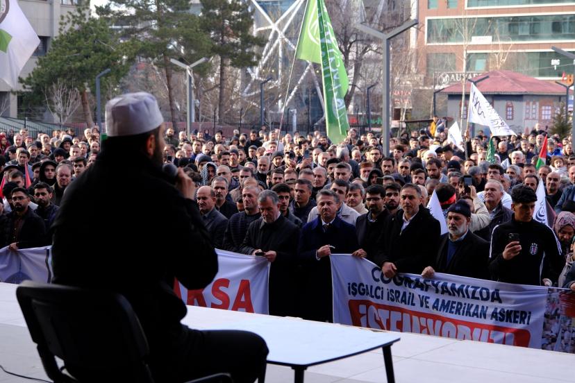 Ümmet coğrafyasının, siyonist rejim ve işbirlikçisi ABD tarafından ateş çemberine alındığını söyleyen Çevik, “Ümmet coğrafyası ateş çemberinde,  Çocuklar, kadınlar ve masumlar gözlerimizin önünde her gün katlediliyor. Bizlere evlerimizde oturmak yakışmaz, işte bugün zalime karşı mazlum kardeşlerimizin yanında olduğumuzu haykırmak ve tüm dünyada bu zalimleri lanetlemek ve zulmün durdurulmasını da bizleri yönetenlerden istemek için bir araya geldik. İşgalci İsrail ile işbirlikçisi ABD’nin yıllardır uyguladığı 'böl, parçala, yut' senaryolarına karşı çıkmak, Gazze’ye, Lübnan’a ve son olarak komşumuz İran İslam Cumhuriyetine yapılan saldırıları ve katliamları lanetlemek için buradayız. Bizler, bölgemizde yürütülen kirli senaryoları, zulmü ve katliamları lanetliyoruz. Bölge halklarının iradesini yok sayan, sınırları kanla yeniden çizmeyi hedefleyen hiçbir askeri girişimi, işgali ya da saldırıyı kabul etmiyoruz. Kendi topraklarımızda hem işgalci İsrail’i hem de bölgeyi kaos bataklığına çeviren Amerikan askeri varlığını reddediyoruz. ABD ve İsrail karşısında direniş dışında bir tercihin olmadığı yaşanan süreçle ortaya çıkmıştır. Teslimiyetçi zihniyetin sonu kardeş ve dost ülkelerde katliam ve soykırım yapılırken, kendisine ne zarar verirse versin ABD üslerini ve radarlarını savunmaya varmıştır. Bugün islam ülkelerinin yöneticileri, ülkelerinin geleceğini ve tam bağımsızlığını düşünüyorlar ise ABD ve İsrail'e karşı Yahya Sinvarın başlattığı direniş destanına destek vermelidirler. Sessizlik, sonu olamayan bir çukurdur. İnsanlığın ortak düşmanı olan ABD ve İsrail şer ittifakı, biz kendimizle ilgili tüm değerleri bir kenara koymadan, onların kulu, kölesi ve gönüllü askerî olmadan bizlerden razı olmayacaklardır.” dedi.