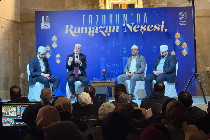Erzurum’da Ramazan Neşesi etkinlikleri kapsamında düzenlenen "Vahyin Sesi-Kur’an Ziyafeti" programı, Yakutiye Medresesi’nde vatandaşların yoğun katılımıyla gerçekleştirildi.