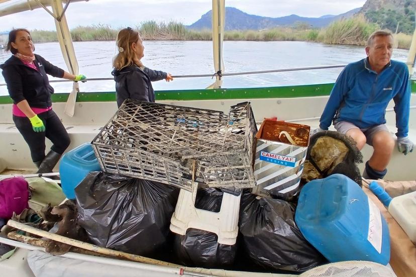 Muğla'nın Ortaca ilçesine bağlı Dalyan Mahallesi'nde, yerli ve yabancı gönüllülerden oluşan Riverbums Çevreci Gönüllü Grubu, 13 yıldır her perşembe günü Dalyan Kanalı ile çevresinde temizlik çalışması gerçekleştiriyor. Aralarında yabancı uyruklu yerleşik vatandaşların da bulunduğu grup, çevre bilincinin yaygınlaşması adına önemli bir sorumluluk üstlenirken, Dalyan'ın eşsiz doğasının korunmasına da katkı sağlıyor. Gönüllüler, 13 yıldır aralıksız sürdürdükleri bu çalışmayla hem çevre kirliliğine dikkat çekiyor hem de topluma örnek oluyor. Grup üyeleri yaptıkları çalışmayla karadan 40 torba çöp toplarken, kanal içerisinden ise bidon, metal boru, şezlong minderi, motosiklet koltuğu, tabure, yüzme makarnası ve araba lastiği gibi farklı türlerde çok sayıda atık çıkardı.