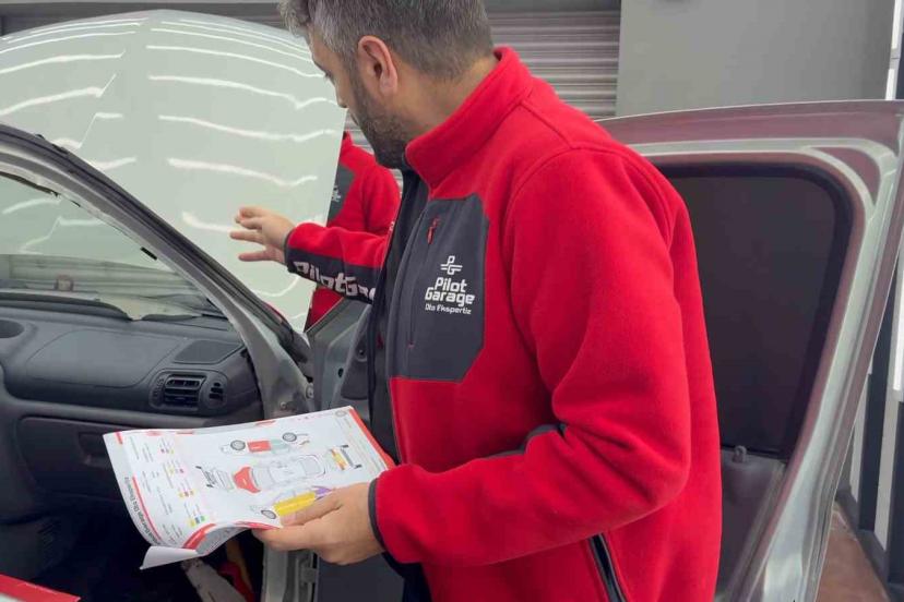 Araç üzerinde inceleme yapan oto ekspertiz ustası Bayram Şahin, "2001 model bir aracımız geldi. Alıcı ve satısı arasında araçta bir değişen, 3 parça boya diye konuşuluyordu. Alıcı ’Dediğinin dışında farklı bir şey çıkarsa ekspertizi ödersin’ diyordu. Aracı incelediğimizde araçta sağ ön kapının, kaputun, ön 2 plastik çamurluğun değişen olduğunu gördük. Yine sol yanın, bagajın boyalı olduğunu gördük. Hatta daha da detaylı incelediğimizde sağ cam direğinden ve sağ marşpiyelin altından kesilip, ön podye ve amortisör kulesinin farklı bir araçtan monte edildiğini gördük. Araç 2001 model, podyenin 2005 model olduğunu fark ettik. Bunu satıcıya gösterdiğimde ‘Ben aracı alırken göstermedim, sadece bir kaportacıya güvenerek aldım’ dedi. Yüzünde mahcubiyetini gördük. Alıcı almaktan vazgeçti. Araç alırken ekspertiz yapmanın önemini bir daha görmüş olduk" dedi.