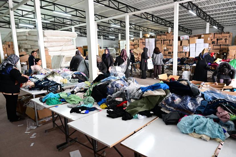 Battalgazi Belediye Başkanı Taşkın yardım malzemeleri tasnifine eşlik etti