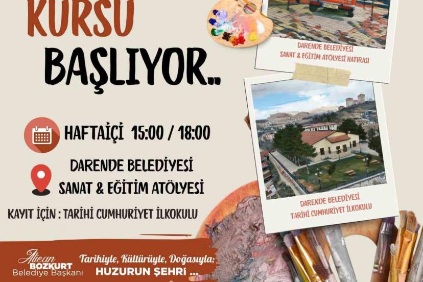 Darende Belediyesi Sanat ve Eğitim Atölyesi bünyesinde gerçekleştirilecek kurs için kayıt ve detaylı bilginin Tarihi Cumhuriyet İlkokulu’ndan alınabileceği ifade edildi.