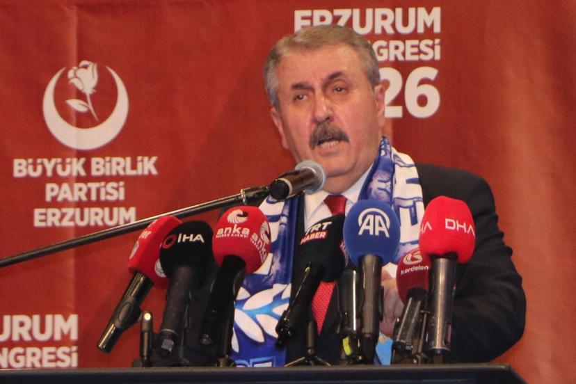 BBP Erzurum İl Başkanlığı'nın 13'üncü olağan kongresi İbrahim Erkal Sanat Merkezi'nde yapıldı. Mevcut başkan Ahmet Eşref Yılmaz'ın tek aday olarak katıldığı genel kurulda konuşan Genel Başkan Mustafa Destici, "İçinden geçtiğimiz süreç; bölgemizde güç dengelerinin yeniden şekillendiği, stratejik denklemlerin yeniden yazıldığı bu bir süreçtir. Sadece askeri değil; dezenformasyon, algı yönetimi, psikolojik harp unsurları ve dijital/siber alanı kapsayan çok boyutlu bir enformasyon mücadelesinin yürütüldüğü kritik bir eşiktir. Bu toz duman içerisinde son günlerde Türkiye Cumhuriyeti'nin duruşu, bazı kesimlerce speküle edilmeye çalışılsa da esasen devletimiz tek bir pusulaya odaklıdır. O da tam bağımsız Türkiye Cumhuriyeti ve sarsılmaz milli egemenliktir. Son dönemde bölgemizdeki krizin uzaması ihtimaline binaen dile getirilen geniş koalisyon tartışmaları, kamuoyumuzda bazı soruları beraberinde getirmiştir. Şunun altını net bir şekilde çizmek gerekir; Türkiye, hiçbir emperyal ajandanın veya haksız bir işgal stratejisinin 'cephe ülkesi' olmamalıdır ve olmayacaktır. Bu çerçevede, Türkiye'nin herhangi bir askeri veya siyasi angajmana dahil olması ancak uluslararası hukukun meşruiyet zemini, doğrudan milli güvenlik tehdidi ve Türkiye Büyük Millet Meclisi'nin iradesiyle, Cumhurbaşkanımız ve hükümetin kararıyla mümkün olabilir. Birilerinin bölgedeki vekalet savaşları üzerinden kurguladığı koalisyon senaryoları, Türkiye'nin milli çıkarları ve bölgesel barış vizyonuyla uyuşmadığı sürece bizim için sadece birer dış gözlemdir" diye konuştu.