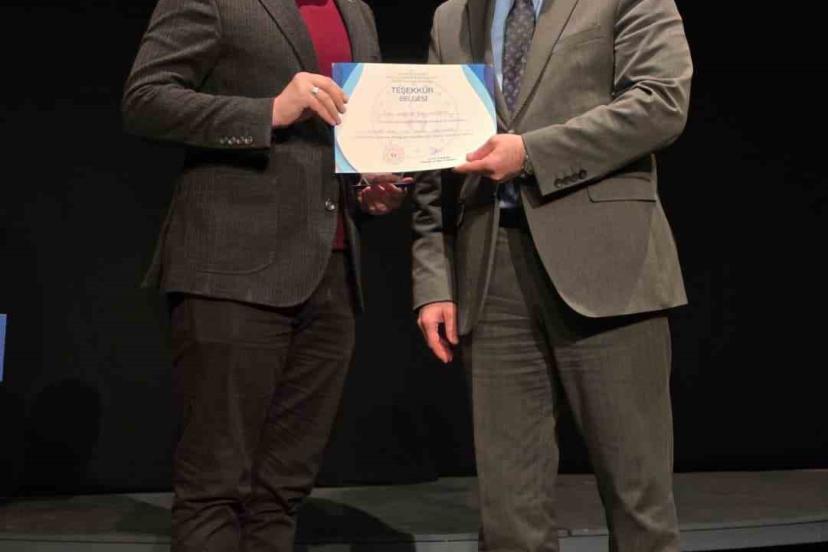 GSB 11. Sanat ve Kültür yarışmaları kapsamında jüri üyeliği yapan Dr. Öğr. Üyesi Veli Kılıçarslan, Ayşe Özden Keleş ile Zeynep İncesu’yu tebrik eden Erzurum Gençlik ve Spor İl Müdürü Levent Çakmur kendilerine plaket ve teşekkür belgesi takdim etti.