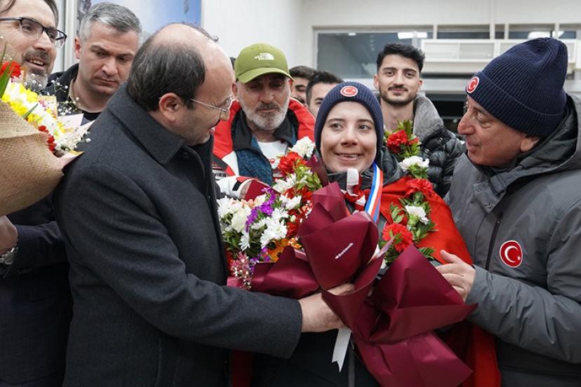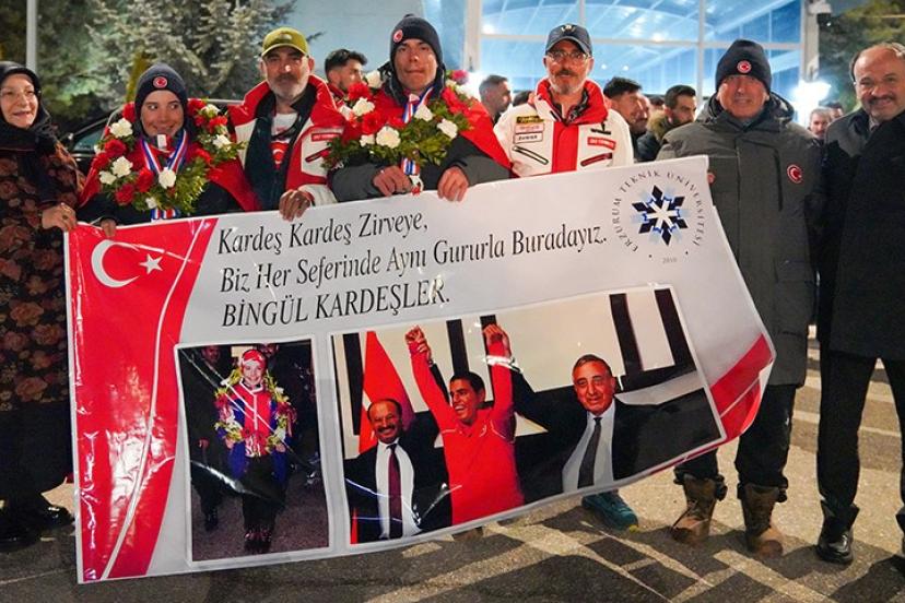 Fransa’dan altı madalya ile Erzurum’a dönen Bingül kardeşler için havalimanında karşılama töreni düzenlenirken alanda ETÜ Rektörü Prof. Dr. Bülent Çakmak’ın yanı sıra çok sayıda akademisyen ve öğrenci yer aldı.