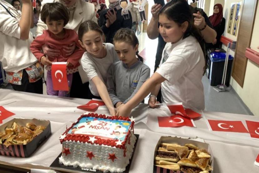 23 Nisan Ulusal Egemenlik ve Çocuk Bayramı kapsamında, bayram coşkusuna katılamayan ve tedavileri Burdur Devlet Hastanesi'nde devam eden çocukları için özel etkinlik düzenlendi. Bayraklar ve balonlarla süslenen servis alanında gerçekleştirilen programda, tedavi gören çocuklar 23 Nisan temalı pasta keserek müzik eşliğinde keyifli anlar yaşadı. Yapılan ikramlarla bayramın tadını çıkaran çocuklar, günün anısına hatıra fotoğrafları çektirdi.