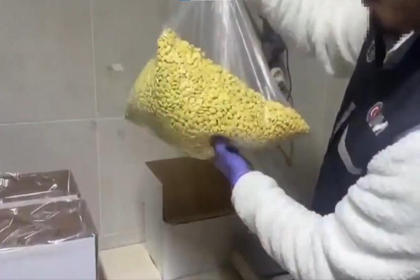 Adreste yapılan aramalarda, yasa dışı kimyasal etken maddeler kullanılarak üretilen yaklaşık 1,5 milyon hap ile 10 milyon hap üretimine yetecek miktarda ham madde ele geçirildi.