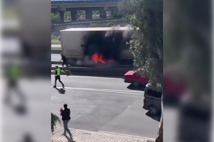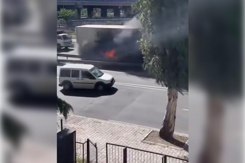İzmir’in Bornova ilçesinde Ankara Caddesi üzerinde seyir halindeki bir tırda henüz bilinmeyen bir nedenle yangın çıktı.