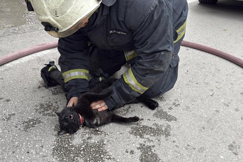 Yanan dairede kedi olduğunun öğrenilmesi üzerine bir itfaiye eri içeride hayvanı aradı. Dumandan etkilenen kediyi dışarı çıkartan itfaiye eri, hayvana kalp masajı yaptı. Uzun uğraş sonucu kediyi yaşama bağlayan itfaiye eri, gülümseyerek hayvanı öptü. Kediyi alan daire sahibinin damadı ise hemen veterinere götürdü.