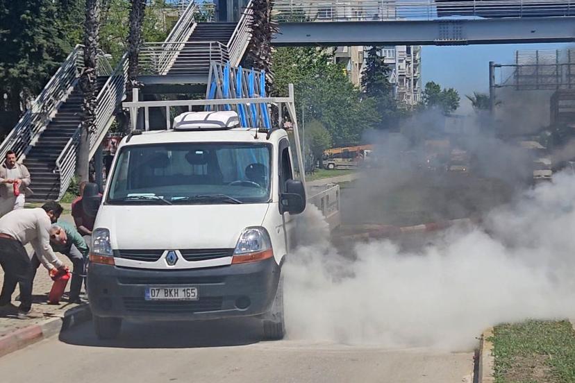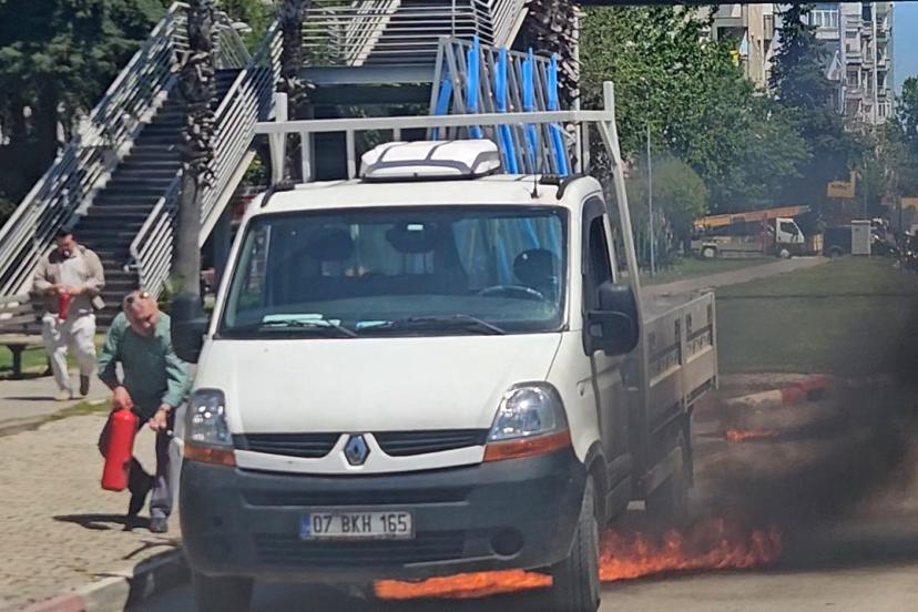 Kepez ilçesi Gazi Bulvarı’nda öğle saatlerinde seyir halinde olan 07 BKH 165 plakalı kamyonette, benzin kaçağı nedeniyle yangın çıktı. Dökülen benzin asfalt üzerinde de alev aldı. Kamyonetin sürücüsü, yol kenarında aracı durdurup inerek, diğer sürücülerden yardım istedi. Yoldan geçen sürücüler, araçlarındaki yangın tüpleriyle müdahale ederek, kamyonetteki yangını söndürdü. Kamyonetin sürücüsü, yangın tüpleriyle yardıma koşanlara, "Allah hepinizden razı olsun" diyerek teşekkür etti. Yangın nedeniyle kısa süreli aksayan trafik, normale döndü. Çevredekilerin ihbarıyla olay yerine gelen itfaiye ekibi, yangının çıkış nedenini belirlemek için çalışma yürüttü.