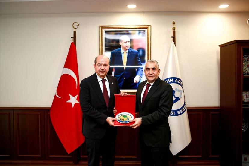 Kuzey Kıbrıs Türk Cumhuriyeti (KKTC) 5. Cumhurbaşkanı Ersin Tatar, Aydın Adanan Menderes Üniversitesi Rektörü Prof. Dr. Bülent Kent'i makamında ziyaret etti.