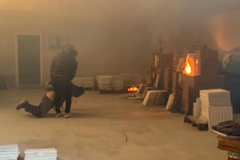 İhbarla adrese polis, itfaiye ve sağlık ekipleri sevk edildi. Kısa sürede olay yerine ulaşan Muratpaşa Suç Önleme ve Soruşturma Büro Amirliği ve Motorize Polis Timlerine bağlı Yunus polisleri, Ali K.'yi ikna ederek iş yerinden çıkarmaya çalıştı. Polis ekibi, bir anlık dalgınlığından yararlanarak Ali K.'yi etkisiz hale getirdi. Kelepçe takılan Ali K., iş yerinden çıkartılırken, itfaiye ekibi alev alan noktaları söndürdü. Ekiplere zorluk çıkaran Ali K.’yi güçlükle sakinleştirildi.