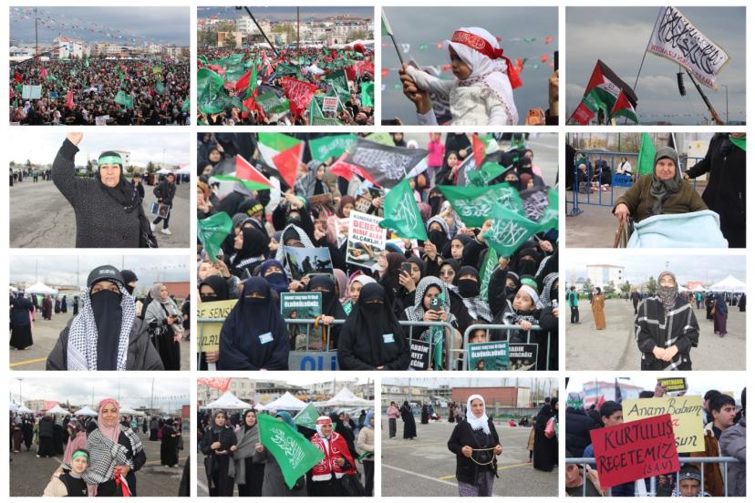 "Vahdet ve Kurtuluş Önderimiz Hazreti Muhammed" temasıyla gerçekleştirilen büyük buluşmaya kadınların yoğun katılımı her zamanki gibi dikkat çekti.