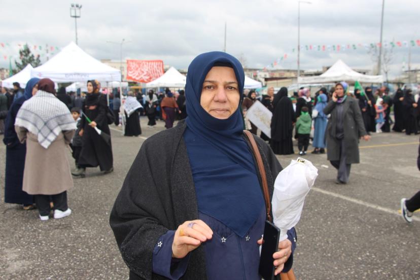 Tekerlekli sanadalye ile meydanda yerini alan 75 yaşındaki Huri Güneş, "Resulullah'ın mevlidi için gelinim ve eşimle birlikte geldik. Resulullah aşkı için alandayız. Yoğun bir kalabalık var. Peygamber Efendimiz'e olan aşkımız büyüktür. İnsanlar bu tür alanlara ne kadar rağbet ederse o kadar güzel olur." şeklinde konuştu.